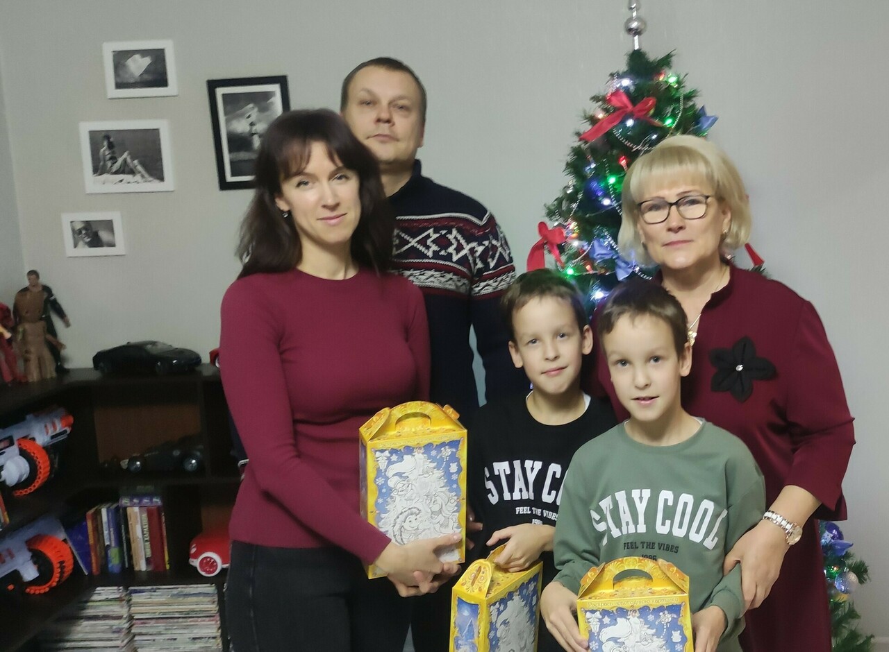 В свою очередь, братья девочки вручили подарки и Ольге Ефимовой – сделанные своими руками новогодние открытки.