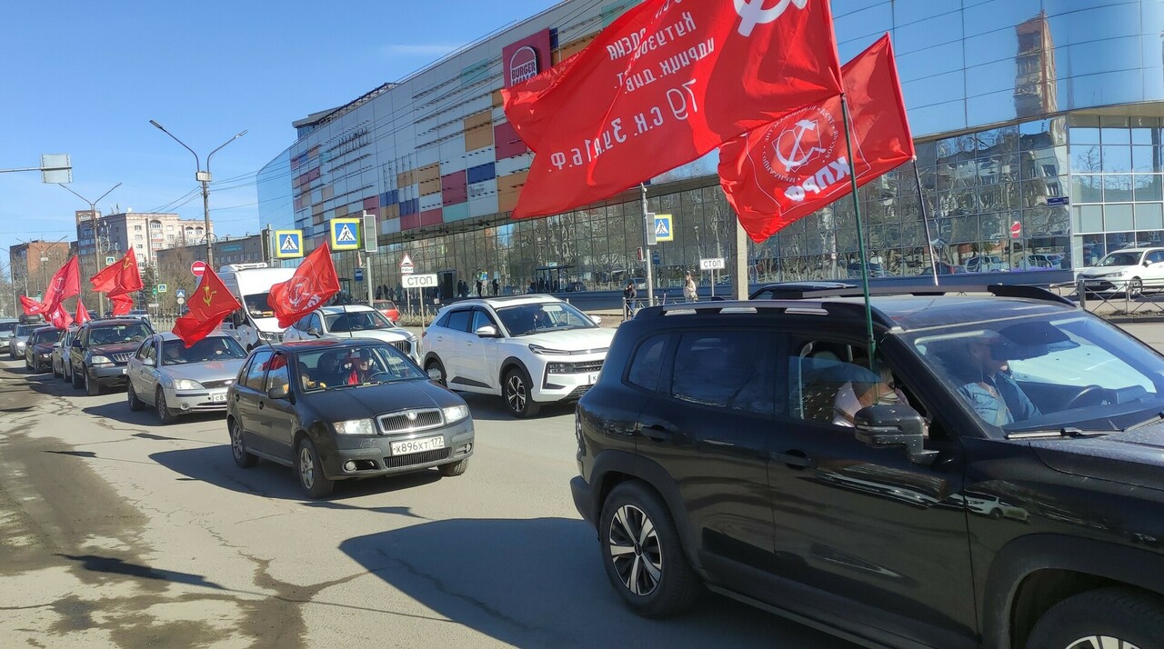 Сегодняшний автопробег в Великом Новгороде организовало Новгородское городское отделение КПРФ, участие также приняли комсомольцы областного центра. Перед стартом участники акции поздравили с днём рождения первого секретаря городского Комитета КПРФ Андрея Михеева. Затем машины выехали с площадки возле железнодорожного вокзала, колонну активистов возглавила первый секретарь Новгородского обкома партии Ольга Ефимова.