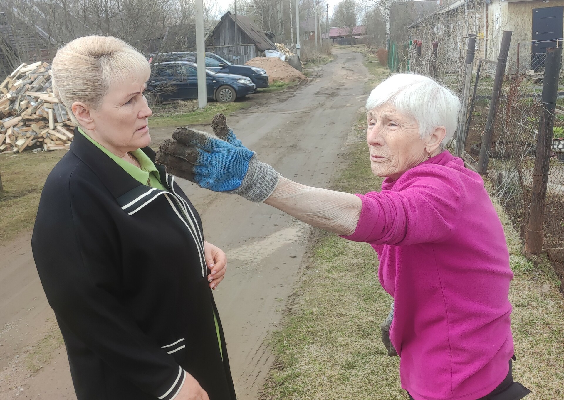 Встретилась Ольга Ефимова и с местным населением по проблемным точкам. В частности, речь идёт о домах №№9, 10 по переулку Светлый. Местный проезд не благоустроен, идёт подтопление дороги от соседних домов, вся привезённая одним из жителей щебёнка полностью ушла в грунт. При этом, со слов жителей, местные власти никаких мер не предпринимают. Примечательно, что в домах живут семьи бойцов СВО.