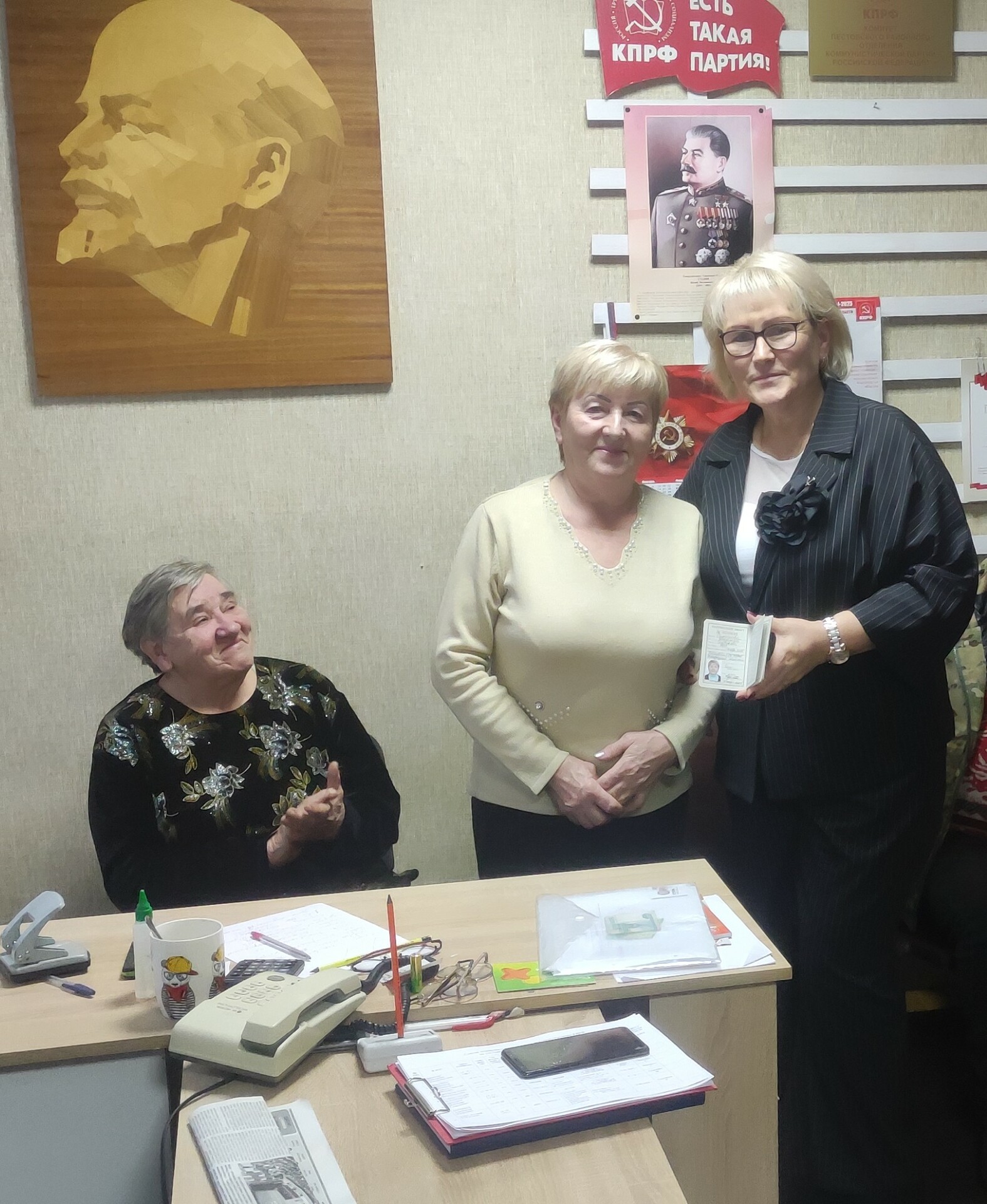 В завершении Ольга Ефимова под аплодисменты пестовских коммунистов вручила партбилет новому члену партии Надежде Самсоновой.