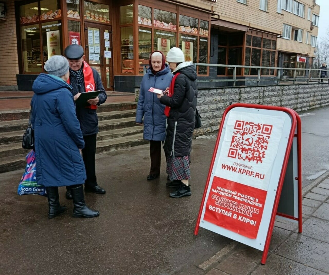 Акцию в поддержку Народного референдума провели сегодня, 5 декабря, в Великом Новгороде члены Новгородского обкома КПРФ и активисты Новгородского городского отделения партии. Она была приурочена началу контрнаступления советских войск под Москвой и дню принятия Конституции СССР в 1936 году (Сталинская конституция).