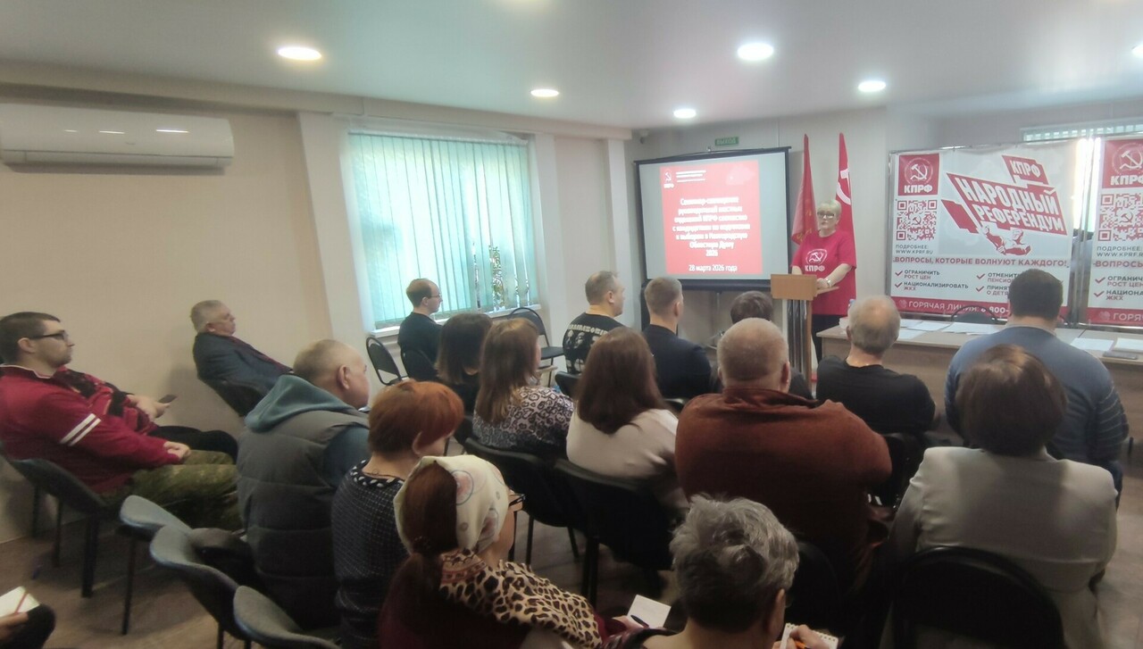 «КПРФ не ставит задачу занять второе место в ходе нынешних выборных кампаний. КПРФ ставит задачу победить на этих выборах! Сейчас власть сознательно уводит общество от внутренних проблем: падение доходов, рост тарифов, ситуация в ЖКХ и т.д. Но эти проблемы везде, и они одинаковы для всех, и уже вызывают протест у населения. И это недовольство людей позволяет объединить нам коммунистов и сторонников партии. Ведь смысловая составляющая одна – справедливость. Надо заставить власть думать о людях. Мы предлагаем это делать на законодательном уровне, работать через депутатский корпус», - так открыла сегодня, 28 марта, семинар-совещание с руководством местных отделений КПРФ совместно с кандидатами в Новгородскую областную Думу по подготовке выборов-2026 первый секретарь Новгородского обкома КПРФ Ольга Ефимова.